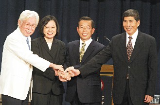 前“總統(tǒng)府國策顧問”黃昆虎昨天中午邀請“考試院長”姚嘉文、“立委”王幸男等人,與辜寬敏、蔡同榮協(xié)調(diào),由黨員強力要求兩人合作,最后協(xié)調(diào)出現(xiàn)契機,蔡同榮決定退選。蔡同榮指出,他與另一位黨主席候選人辜寬敏路線相近,辜寬敏堅持不愿意退,因此他決定退選,全力支持辜寬敏。辜蔡兩人今天上午十點在臺大校友會館召開者會對外說明,但巧合的是,蔡英文在同時間、同樣在臺大校友會館,舉行與公民團體對話記者會。