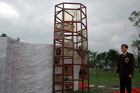 臺灣省宜蘭縣史館二十九日在縣議會為反日殖民統(tǒng)治先驅(qū)蔣渭水舉行紀(jì)念物揭幕典禮,蔣渭水孫子蔣朝根(右)親自參加!爸醒肷纭眻D 沈如峰 攝