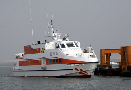 一百八十二人座“仙洲號”交通船已經(jīng)駛抵金門,將于明年初投入大小金門海上輸運(yùn)行列。“中央社”圖 倪國炎 攝