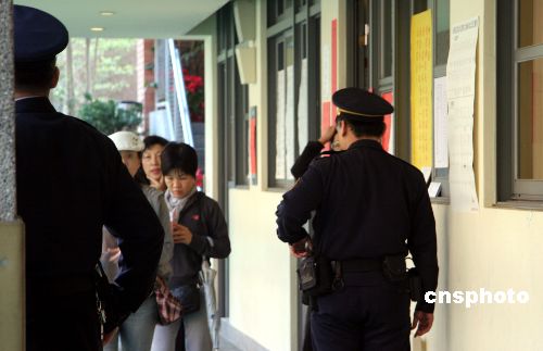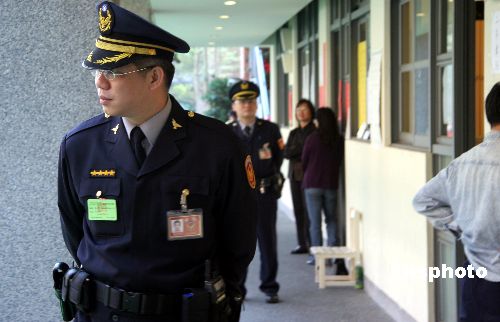 圖:臺北警員在“立委”選舉投票現(xiàn)場維安