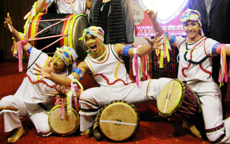 2008高雄燈會(huì)藝術(shù)節(jié)即將登場(chǎng),表演團(tuán)體十八日先演出精彩片段,令人驚艷。“中央社”圖 陳朝福 攝