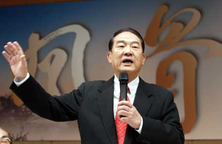 宋楚瑜二月二十五日出席前高雄縣長林淵源“風(fēng)骨─林淵源八十談往”新書發(fā)表會,批評藍(lán)綠兩位“大選”候選人辯論會都未真正面對問題。(“中央社”圖;孫仲達(dá)攝)