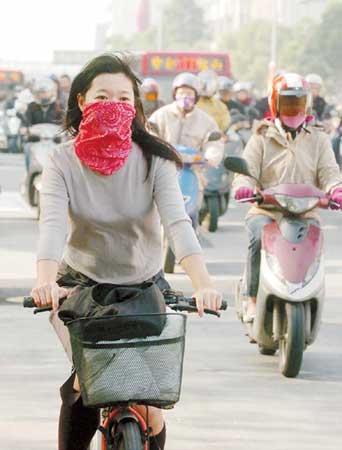 沙塵暴三日侵襲臺(tái)灣,各地懸浮微粒濃度明顯增加,北部地區(qū)空氣質(zhì)量達(dá)到不良情形,懸浮微粒濃度以嘉義樸子和臺(tái)南安南飆高超過(guò)每立方米三百五十微克為最高。為“抵抗”沙塵暴,外出上班的民眾用頭巾包住口、鼻。臺(tái)灣《中國(guó)時(shí)報(bào)》圖 劉宗龍 攝