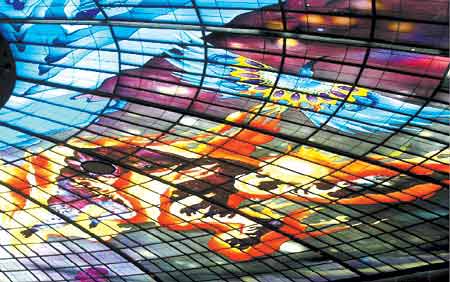 直徑高達三十米的大型玻璃天幕,七日將于高雄捷運(城鐵)美麗島站亮起來。這項名為“光之穹頂”的公共藝術,出自意大利玻璃藝術家水仙(Narcissus Quagliata)之手。他以三年時間建造,總面積六百六十平方米,用了一千兩百五十二片窗組裝而成。所有成品是在美國燒制后,分批以海、空運送來臺。臺灣《中國時報》圖