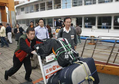 臺灣地區(qū)領導人選舉前夕,金門小三通航線十九日受濃霧影響,中午過后才通航,水頭碼頭涌現(xiàn)搭船入境旅客,大多是返鄉(xiāng)投票的臺商。(“中央社”圖;倪國炎/攝影)