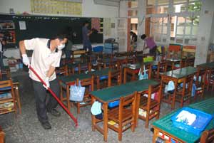 圖:彰化小學(xué)為教室消毒防腸病毒