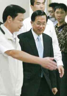 陳水扁今天上午9點(diǎn)20分驅(qū)車抵達(dá)臺北地院,一身筆挺西裝、藍(lán)色領(lǐng)帶、白色襯衫,臉上還露出略帶嚴(yán)肅的淺笑。沒有對媒體發(fā)表談話的他,似乎仍對今天的大對質(zhì)充滿信心。