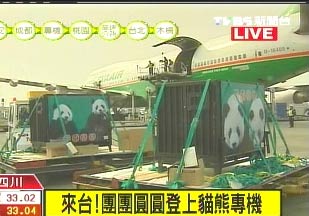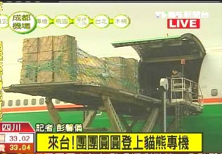 圖:贈臺大熊貓“團團”“圓圓”裝機啟運