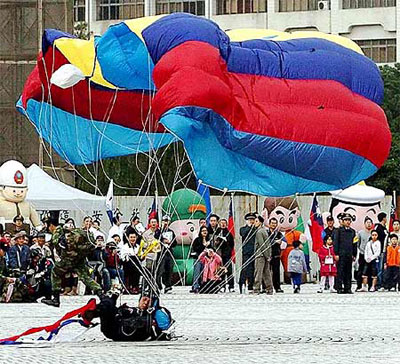 據(jù)臺灣《聯(lián)合晚報》報道,10名“神龍小組”隊(duì)員由高空飄降至中正紀(jì)念堂廣場,組長王勸閩中校著陸時在地上翻滾,起身后發(fā)現(xiàn)流鼻血,軍方宣稱是高空氣壓變化造成,不是受傷。