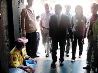 中新網(wǎng)11月14日電 民進(jìn)黨參選人謝長(zhǎng)廷昨天到臺(tái)中縣豐原市慈濟(jì)宮參拜時(shí),被媒體拍到與乞丐擦身而過(guò)的畫(huà)面。