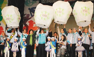 謝長廷總部動員一千個高雄長昌會及33個后援會,晚會場地涌入5萬人潮,現(xiàn)場并升祈福天燈。民進黨五位“立委”候選人在“母雞”謝長廷帶領下同臺拉抬選情,高雄市長陳菊也到場助陣。