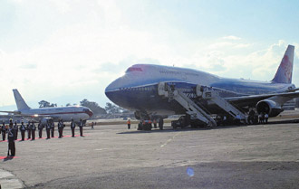 據(jù)了解,連當?shù)孛襟w都覺得危國政府這樣的安排,對訪賓相當不尊重。因機頭正對紅毯,等于是陳水扁步出機門時,無法依例向迎賓揮手致意,必須立即下機,接著右轉才能走上紅毯,當?shù)孛襟w捕捉鏡頭時,只能帶到機頭畫面。