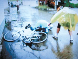 杜正勝離開(kāi)水璉中途學(xué)校后前往預(yù)計(jì)中途休息點(diǎn)的新社小學(xué),不料新社小學(xué)旁水泥道路有些坡度,加上連日陰雨地面濕滑、長(zhǎng)青苔,同行隊(duì)友見(jiàn)杜正勝騎得有些吃力,好心推他一把,接著杜正勝因地面濕滑而摔跤。