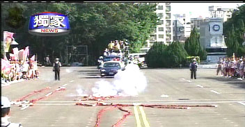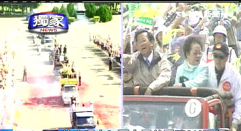 陳水扁和呂秀蓮的競(jìng)選車(chē)隊(duì)經(jīng)過(guò)臺(tái)南市金華街,之所以布置這樣一個(gè)情境,為的就是嚴(yán)防“319槍擊事件”再度上演。
