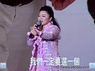 除了白冰冰外,閩南語歌壇“大姐大”陳盈潔也現(xiàn)身馬英九的場子。陳盈潔說:“這是我一生中最關懷的,幾號?2號!選誰?馬英九!”