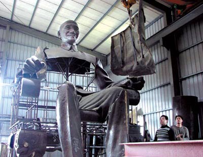 經(jīng)過桃園縣和高雄市政府多次協(xié)調(diào),最后委托藝術(shù)家郭少宗進行規(guī)劃、林昭慶執(zhí)行重組,預(yù)計本周三從臺北縣運往大溪慈湖兩蔣文化園區(qū),接著焊接、補強、組合估計花上10天,15日,全臺最大蔣介石銅像將在慈湖“重現(xiàn)風(fēng)華”。