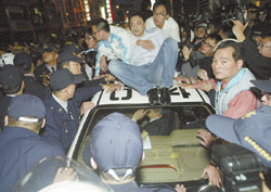 眼見已發(fā)生警民沖突,臺(tái)北警方立刻提高處理層次,先由中山分局出動(dòng)各派出所待命警力,并調(diào)派保安大隊(duì)五十名警察趕到現(xiàn)場,利用優(yōu)勢警力,把警車團(tuán)團(tuán)圍住。