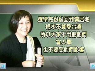 不過,這兩人的說法都不被馬陣營所接受。馬陣營發(fā)言人蔡詩萍表示,從來都不認(rèn)為挺綠、支持民進(jìn)黨候選人謝長廷的人不是臺灣人,也不會拿挺綠的藝人來消費,但今天要為挺藍(lán)的藝人說句公道話,挺藍(lán)藝人絕對不是如江霞、葉菊蘭所說的“不是臺灣人”。
