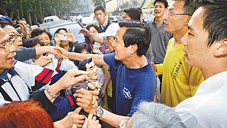 據(jù)臺灣《蘋果日報》報道,昨天清晨4時不到,逾20名馬迷已在馬家大門口守候,準(zhǔn)備向出門跑步的馬英九要簽名及握手。上午7時30分,馬英九跑完步回家照例向等候的馬迷致意,一開始場面還算平和,沒想到群眾太過熱情,先是有人插隊,加上有人向前擠著要簽名,海報、報紙擋住了特勤人員視線,還有人被擠得跌倒,場面混亂到連特勤人員都擋不住,維安隊形幾乎被沖散。