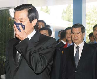 馬英九、蕭萬長5日到蔣經(jīng)國頭寮陵寢謁陵,馬英九感傷落淚。