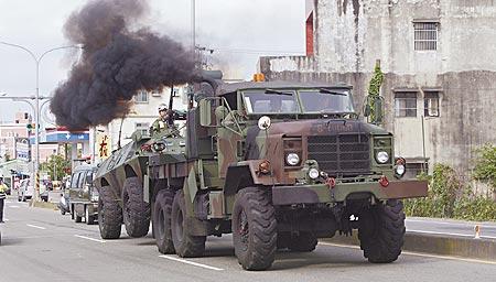 演習(xí)啟動后,臺軍憲兵所屬裝甲車立刻駛出營區(qū),這也是“玉山兵推”實行以來首度有裝甲車在白天開入市區(qū)。