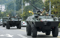 中新網(wǎng)4月24日電 22日展開的臺灣“玉山○八”政軍兵推過程中,外界見到一批批急奔圓山指揮所的裝甲車內(nèi),除了搭載陳水扁、“行政院長”等“政軍首長”外,沒想到其中一輛搖晃又昏暗的裝甲車座艙內(nèi),居然意外出現(xiàn)幾名美國人的身影,其中一人居然是AIT美國在臺協(xié)會臺北辦事處長楊蘇棣。