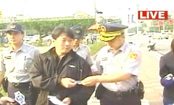 其中一名男子頭戴斗笠、穿著“阿扁下臺”的服裝,站在官邸前表達不滿。在警方把他架到警車時,他突然昏厥倒地不愿配合。警方最后只好將他抬上車。