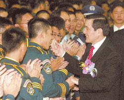 報(bào)道指,因?yàn)椤包h旗飛舞”這句話,傳唱八十年的陸軍軍校校歌,在陳水扁任內(nèi)決定停唱,馬英九上任后立即恢復(fù),馬英九昨日也跟著全校師生大合唱。