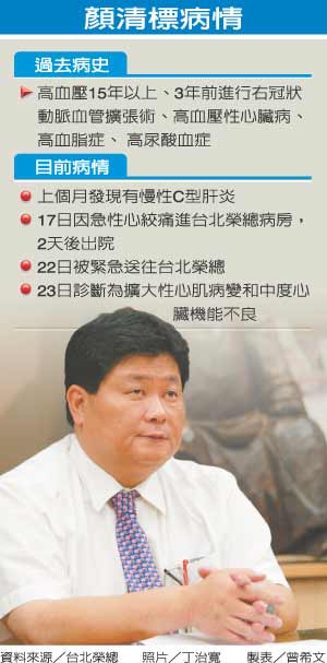 據(jù)臺灣《聯(lián)合報》報道,外界質(zhì)疑顏清標裝病逃避入監(jiān),其主治醫(yī)師周嘉裕表示,顏清標的心臟明顯擴大,有嚴重肺積水等病癥。他反問:“像肺水腫這種,怎么假裝?”