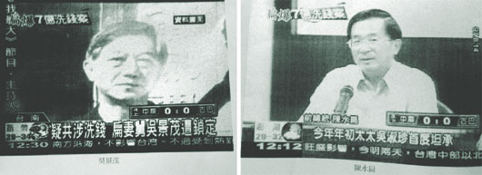 陳水扁與吳景茂被限制出境,臺“海巡署”翻拍兩人電視畫面近照,供各港口安檢人員比對查核。(圖:臺灣《聯(lián)合報》)
