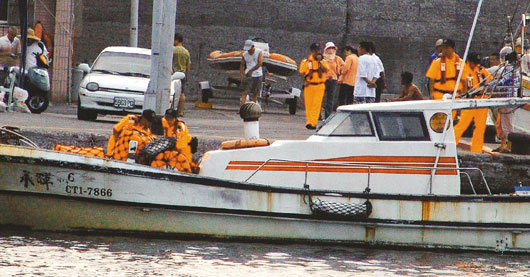 臺“海巡署”安檢人員加強(qiáng)安檢,登船仔細(xì)檢查防止限制對象出海。(圖:臺灣《聯(lián)合報》)