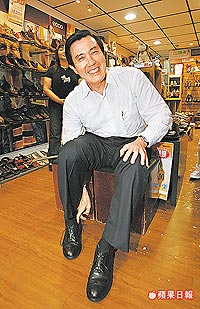 據(jù)臺灣媒體報道,馬英九昨晚買新鞋,配合店家滿五千送五百的優(yōu)惠,挑了兩雙。記者問馬英九,現(xiàn)在“第一家庭”的消費能力是否差很多,馬英九尷尬地說:“對啊,要改進!彼笑說:“我不是不消費,是太忙沒時間啦!”