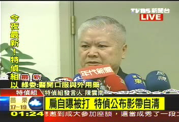 特偵組發(fā)言人陳云南:“我們的法警在警衛(wèi)人員及律師的注視之下,銬上手銬,然后在警衛(wèi)人員護衛(wèi)之下,走下樓梯,到樓下的門口,在樓下門口的時候,陳前‘總統(tǒng)’把雙手高舉一段時間,我們的司法警察同仁把他的手按下來,請他上車,這過程中有我們本署的錄像帶,以及媒體記者朋友的錄像帶可以證明!