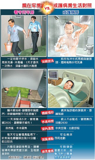 陳水扁在看守所與戒護(hù)病房生活對(duì)比(來(lái)源:臺(tái)灣《蘋(píng)果日?qǐng)?bào)》)