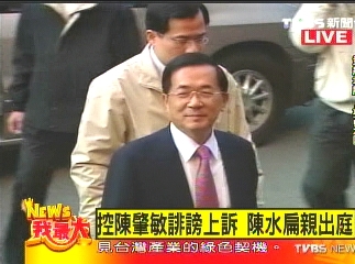 中新網(wǎng)12月17日電 陳水扁控告臺當(dāng)局“國防部長”陳肇敏加重誹謗案一審敗訴后提出上訴。臺灣“高院”今天下午15點30分左右開庭,陳水扁無保釋放后首次親自出庭。