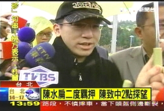 中新網(wǎng)12月30日電 據(jù)臺(tái)灣TVBS報(bào)道,陳水扁第二度遭到羈押,由于沒有禁見,他的兒子陳致中在今天下午兩點(diǎn)到臺(tái)北看守所探視。