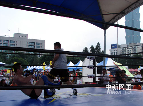 九個展區(qū)、一百六十二個攤位,處處都很熱鬧。臺灣明年九月要舉辦“聽障奧運(yùn)”,殘障人士組織的“阿甘精神發(fā)展協(xié)會”的攤位放在很顯眼的地方;“臺灣摔角聯(lián)盟”搭起了高臺,正在現(xiàn)場示范教學(xué),大力士裝著一次又一次地被重重摔在角斗臺上,惹得幾個學(xué)生模樣的小孩蠢蠢欲動,爭著要跟大力士切搓。
