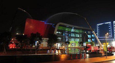 新華網10月11日報道(攝影記者 張曉豐)為做好亞運安保滅火救援準備工作,10月9日晚,廣東省公安消防總隊在廣州亞運城主媒體中心舉行跨區(qū)域滅火救援演練。