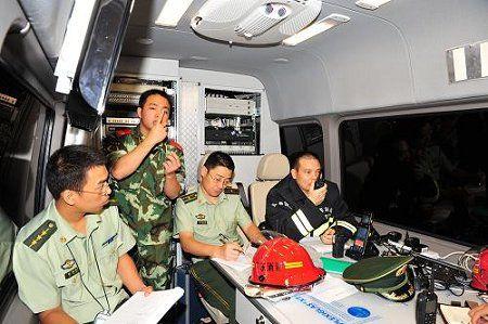 指揮人員在指揮車內指揮滅火