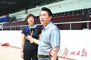 國家體育總局乒羽中心主任劉鳳巖(右)與天河體育館團隊主任關(guān)渭貞在演練現(xiàn)場