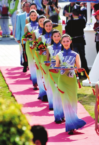 每天和禮儀小姐接觸的詹曉珊也認(rèn)為,這個(gè)衣服雖然看起來很緊,實(shí)際上穿起來很舒服,衣服的材料將禮儀小姐的身材包裹起來但裙擺又如流水一般,體現(xiàn)出了端莊、大氣!皬V東這邊天氣很熱,氣候的原因,所以通透是很重要的,我們化妝也是綜合考慮了衣服的質(zhì)地和顏色,所以也只是以淡妝為主,顯示出廣州的那種柔美!薄”景娓寮鹈饩扇A西都市報(bào)記者陳甘露彭晗文乘武雷遠(yuǎn)東廣州攝影報(bào)道