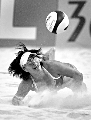 亞運會沙排半決賽,中國選手張希飛身救球,她和搭檔薛晨晉級決賽。新華社發(fā)