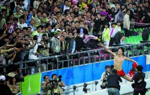 劉翔把上衣拋向看臺。