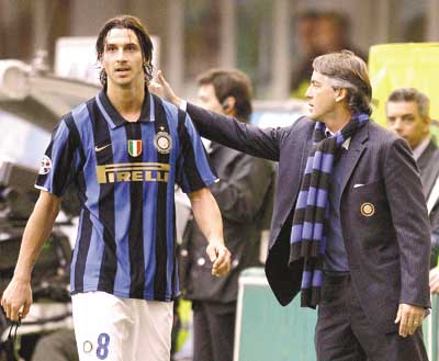 國(guó)米贏球又爆內(nèi)部有隙 伊布再與曼奇尼交惡(圖)