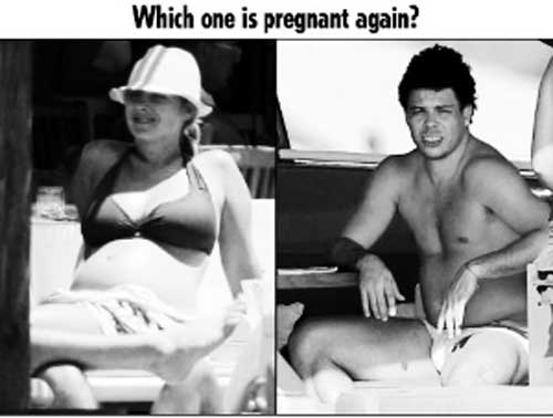 路易斯目前正懷著他和小雷的第2個孩子,挺著肚子大腹便便的躺在海灘上。受傷后身材肥胖嚴(yán)重走形的大羅也挺著個大肚子,于是《太陽報》將兩人的照片放在一起比對說:誰看上去更像是懷孕了呢?