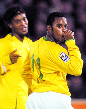 本場(chǎng)比賽從排兵布陣上就可以看出巴西隊(duì)拿出了真本事。鋒線排出目前所能排出的最強(qiáng)組合,小羅、羅比尼奧、法比亞諾組成三叉戟。鄧加把最大的希望寄托在羅羅組合上,尤其是剛剛以4200萬(wàn)歐元的身價(jià)轉(zhuǎn)會(huì)到曼城的羅比尼奧。在最近的訓(xùn)練中,鄧加和羅比尼奧反復(fù)交談,很顯然,羅比尼奧是鄧加的關(guān)鍵一步棋。小羅在AC米蘭的聯(lián)賽首戰(zhàn)表現(xiàn)出色,贏得滿堂喝彩,加之卡卡因傷缺席,小羅回到首發(fā)陣容也不意外,這是他時(shí)隔一年后再度代表巴西國(guó)家隊(duì)出場(chǎng)。賽前,小羅表示自己希望和羅比尼奧搭檔:“與羅比尼奧踢球挺好的,因?yàn)樗磻?yīng)和思考特別快!倍鲙涏嚰右仓v道:“小羅能頂在前面,在前場(chǎng)左路,這也是他發(fā)揮最出色的一個(gè)位置。他和羅比尼奧可以一起首發(fā),他們都是能獨(dú)自解決比賽的球員!