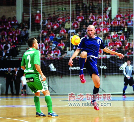 皇馬在國王杯中出局的同一天,齊達(dá)內(nèi)也在馬德里打了一個比賽,不過他只是參加了一場室內(nèi)慈善賽,與耶羅及卡尼薩雷斯等人在木地板上大秀腳法。