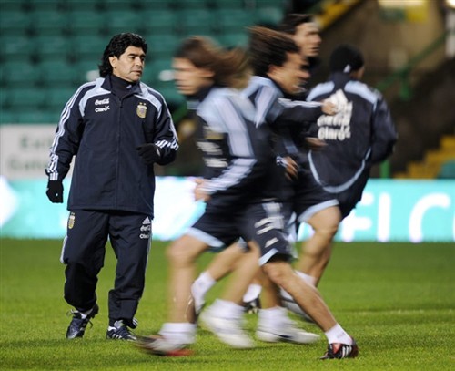 馬拉多納率隊(duì)備戰(zhàn)熱身賽 球場再現(xiàn)球王英姿(圖)