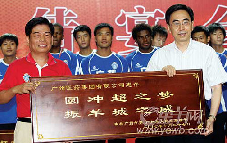 廣藥隊(duì)沖超獎金其實(shí)不止這320萬元。根據(jù)廣藥集團(tuán)2006年初接手廣州足球時(shí)的決定:若廣藥隊(duì)沖超成功,廣州市委市政府獎勵(lì)多少,廣藥集團(tuán)將獎勵(lì)同樣額度獎金。換言之如果這一決定今年沒有改變的話,那廣藥集團(tuán)也將向廣藥隊(duì)獎勵(lì)300萬元。不過,廣藥集團(tuán)對沖超獎金一事始終是不置可否。