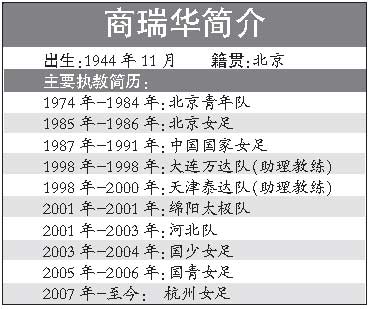 商瑞華是中國女子足壇的元老級(jí)人物,中國女足運(yùn)動(dòng)開端之后的優(yōu)秀球員均在其手下效力過,包括李秀馥、吳偉英、劉愛玲、溫莉蓉、孫雯等人。雖然在率隊(duì)參加的1991年首屆女足世界杯賽上,中國女足因負(fù)于瑞典隊(duì)而無緣4強(qiáng),但這支國家隊(duì)奠定了中國女足在1996年、1999年兩奪世界亞軍的基礎(chǔ)。離開主教練崗位后,商瑞華曾先后以助理教練的身份執(zhí)教男足的大連萬達(dá)隊(duì)、天津泰達(dá)隊(duì),擔(dān)任過四川綿陽隊(duì)主教練,隨后又任職河北女足、中國女足青年隊(duì),目前在杭州女足任教。